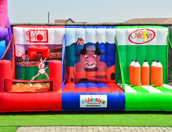 3 IN 1 INFLATABLE COMBO IS One of our newest and most popular unit this year. This game combo is a must have for your next event. its interactive and addictive. This combo is perfect for any of your upcoming events. also available in pink