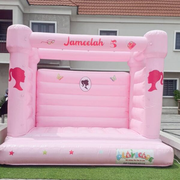 This shocking pink Barbie bouncy castle is great for girls that not only love Barbie, but love PINK !! It features a bounce and Slide with fun Obstacles inside. Strictly NO face paint please. Face paint stains PVC permanently. If face paint is found to have stained our products, you may be liable for replacement of goods. Size: L-18 x W-15 x H-12 ft Occupancy: 8 -10 Kids Recommended age: 1 – 13years Power: 1500 watts / 220v/ 1 Blower